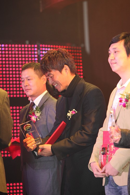 TonyPark在領(lǐng)導手中接過獎杯和證書