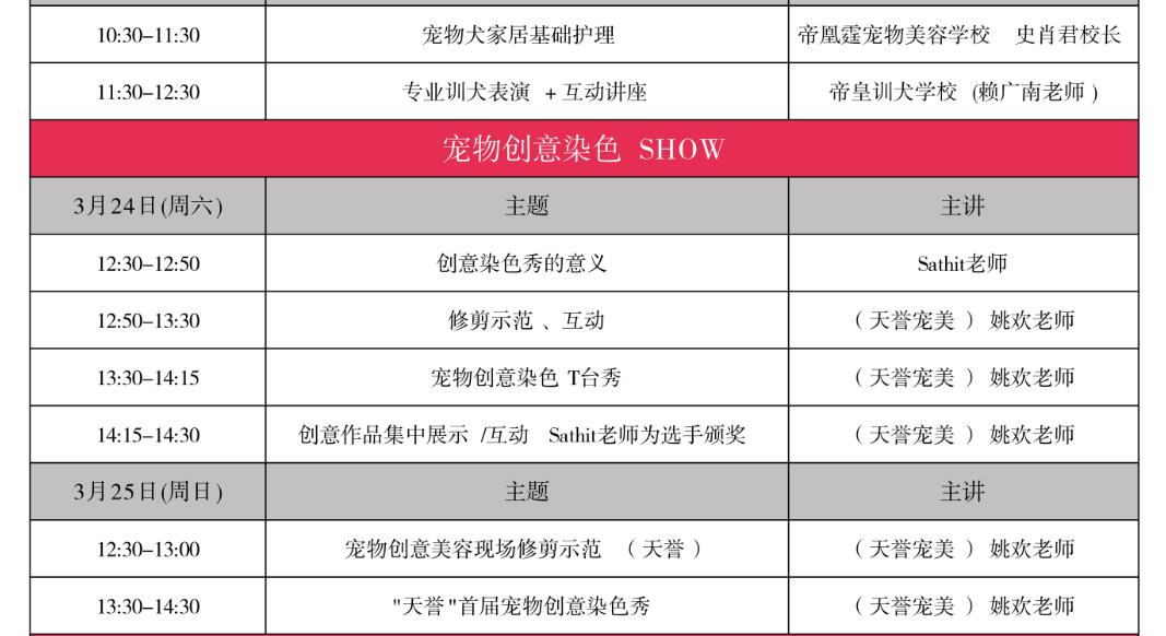 CPF國際寵博會組委會為更好的推動寵物美容流行趨勢;與天譽國際藝術寵物美容學校強強聯(lián)合,通過寵物創(chuàng)意染色走秀,向觀眾展示最流行的寵物美容時尚概念;通過此次活動,給巧手的寵物美容師們提供一個可以展現(xiàn)自己精湛才藝的舞臺;通過對寵物美容師創(chuàng)意作品的展示,吸引、儲備更多的優(yōu)秀的寵物界時尚人才;同時,也使大眾更多的了解創(chuàng)意美容,使寵物創(chuàng)意美容越來越多的走近我們的生活。