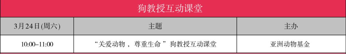 狗教授互動課堂:“狗教授”課程是由亞洲動物基金貓狗福利項目部門獨創(chuàng)并主辦的,旨在培育青少年同理心、責任心的關愛動物尊重生命教育公益活動,最早在2004年在香港正式啟動,目前已經(jīng)在香港、廣州、成都和深圳四個城市開展。截止2017年底,中國四個城市的“狗教授”們共為近800個學校超過99000名學生開展了關愛動物教育。課程從狗狗的知識入手,通過生動有趣的方式,教育和鼓勵孩子們關愛身邊的動物,善待所有的生命。
