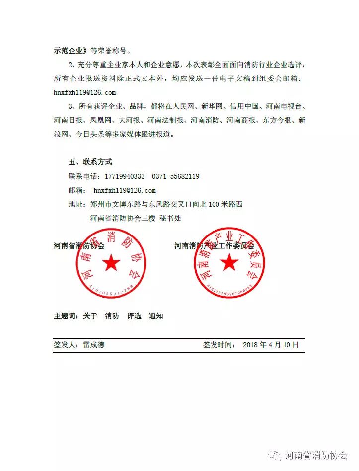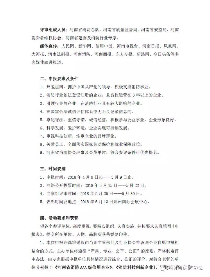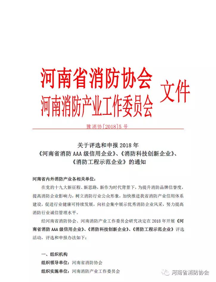 關于評選和申報2018年 《河南省消防AAA級信用企業(yè)》、《消防科技創(chuàng)新企業(yè)》、 《消防工程示范企業(yè)》的通知