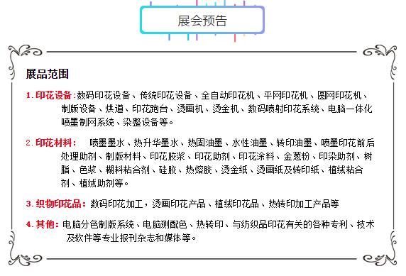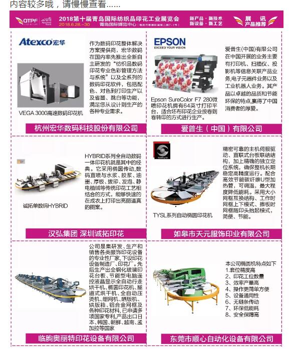 “2018第十屆青島國(guó)際紡織品印花工業(yè)展覽會(huì)”即將開(kāi)展,我們整理了第一波“新產(chǎn)品·新技術(shù)·新設(shè)備·新工藝”的信息播報(bào)給你們,后續(xù)更多的產(chǎn)品資訊推送,請(qǐng)做好準(zhǔn)備!