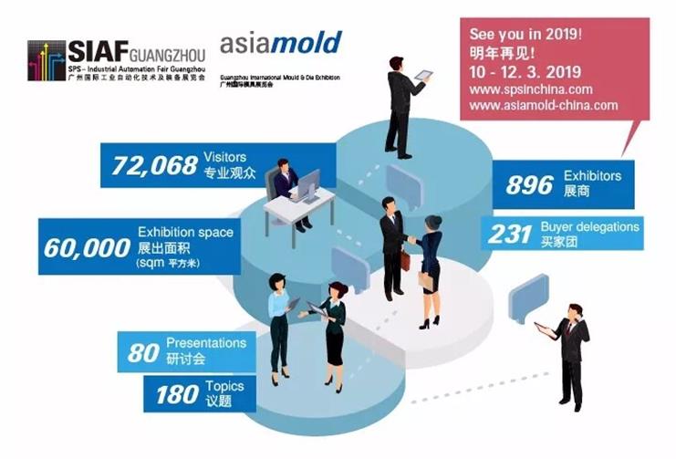 第十三屆廣州國際模具展覽會(Asiamold)于 2019 年 3 月 10 至 12 日再度在廣州中國進出口商品交易會展館舉行,聯手 SIAF 廣州國際工業(yè)自動化技術及裝備展覽會,兩展將共同展示貫穿從模具、3D 打印、智能制造, 到生產自動化的工業(yè)生產鏈,助力業(yè)界開拓“中國制造 2025”戰(zhàn)略所帶來的龐大商機。
