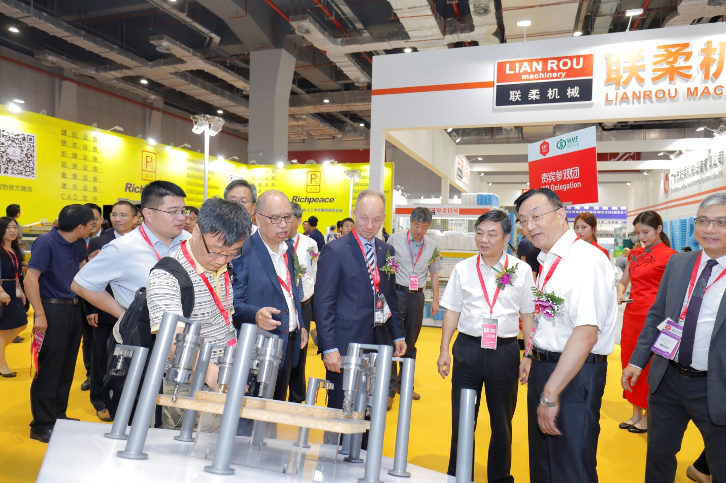 開幕第一天陣容鼎盛。中國家博會(上海)負責人楊華偉、中國林業(yè)機械協(xié)會會長劉群、秘書長韋劍,雅式展覽服務(wù)有限公司董事長朱裕倫、總經(jīng)理鐘致賢、企業(yè)發(fā)展總監(jiān)朱明怡代表出席了開幕當天早上的貴賓參觀團。此外,大會更邀請了多位中外協(xié)會領(lǐng)導及業(yè)界代表一同參觀,如國家林業(yè)和草原局原總工程師封加平、國家林業(yè)局北京林業(yè)機械研究所所長傅萬四、國家木工機械質(zhì)量監(jiān)督檢驗中心常務(wù)副主任顏良、中國林科院木工所所長傅峰、副所長呂斌、中國綠色時報社副社長劉寧、副秘書長陳圣林、中國綠色碳匯基金會秘書長鄧侃、中國林產(chǎn)工業(yè)協(xié)會副會長錢小瑜,以及歐洲木工機械制造協(xié)會(EUMABOIS)會長Juergen Koeppel、臺灣木工機械發(fā)展協(xié)會理事長張聰捷、青島市木工機械協(xié)會會長趙立德、佛山市順德區(qū)倫教木工機械商會會長劉樂球等。