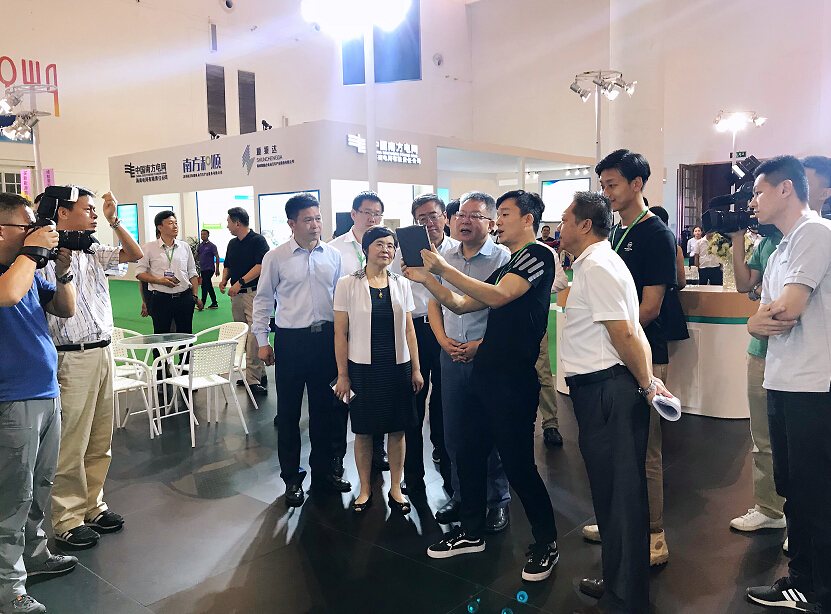 10月19日上午,海南省人民政府副省長沈丹陽一行參觀野馬新能源展臺