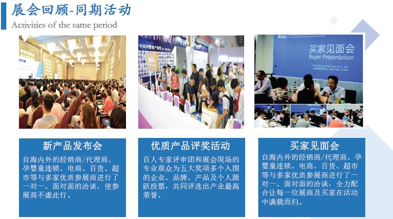 為提升企業(yè)的品牌知名度和美譽(yù)度,彰顯卓越的產(chǎn)品品質(zhì)和服務(wù),展會(huì)開展期間將舉行產(chǎn)品評(píng)獎(jiǎng)活動(dòng),大會(huì)獎(jiǎng)項(xiàng)設(shè)置“金獎(jiǎng)”;“推薦新產(chǎn)品”獎(jiǎng);“優(yōu)質(zhì)產(chǎn)品、最佳產(chǎn)品”獎(jiǎng);(相關(guān)參評(píng)條件請(qǐng)向組委會(huì)索取)。展會(huì)期間將邀政府機(jī)構(gòu)、國家級(jí)媒體及行業(yè)媒體、業(yè)內(nèi)專家、舉辦千人大會(huì)及多場(chǎng)專題論壇,會(huì)議與展會(huì)相互輝映,品牌企業(yè)的必選!母嬰連鎖與電商智變專題論壇,母嬰零售門店升級(jí)發(fā)展新途徑母嬰服務(wù)品牌升級(jí)發(fā)展論壇,月子會(huì)所與產(chǎn)后修復(fù)發(fā)展論壇,嬰兒游泳與親子攝影論壇、資助貧困兒童大型義賣公益活動(dòng)、公益大講堂等等。使眾多參會(huì)人員在參觀展會(huì)的同時(shí),享受學(xué)習(xí)、交流的饕餮盛宴,得到了參展企業(yè)的一致好評(píng)。