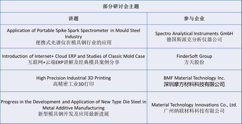 Asiamold一直致力于為華南地區(qū)制造業(yè)提供與3D打印、金屬加工及模具相關的先進技術、產品及解決方案,配合內容全面的研討會及峰會以豐富參展商和觀眾的與會體驗。2019年的廣州國際模具展覽會研討會將于展會首天舉辦,為本地及海外行業(yè)專家提供機會分享最新科研成果。