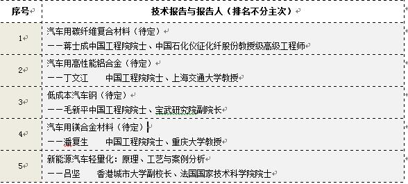 針對汽車輕量化新產(chǎn)品、新技術(shù),將組織10項(xiàng)新專題發(fā)布會。