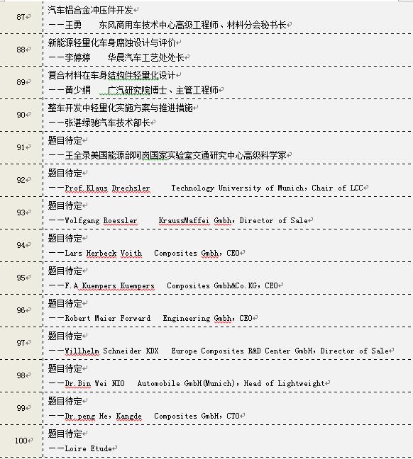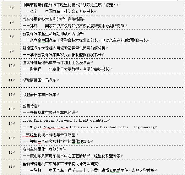 其中,正在與工信部、科技部、廈門金龍、城都大運(yùn)、中通客車、北汽動力總成、賽麟汽車、漢騰汽車、福特汽車、本田汽車,以及一汽、東風(fēng)、長安、江淮、上汽等底盤部門匯報(bào)和商談參會事項(xiàng),同時(shí),擬邀請德爾福、西門、麥格納、大陸、延鋒、敏實(shí)、奇昊、偉世通、濰柴等全球汽車零部件百強(qiáng)中20多家零部件企業(yè),預(yù)計(jì)本次參加汽車輕量化大會的中大型汽車企業(yè)有60多家,全球汽車零部件百強(qiáng)中有50多家零部件企業(yè)。