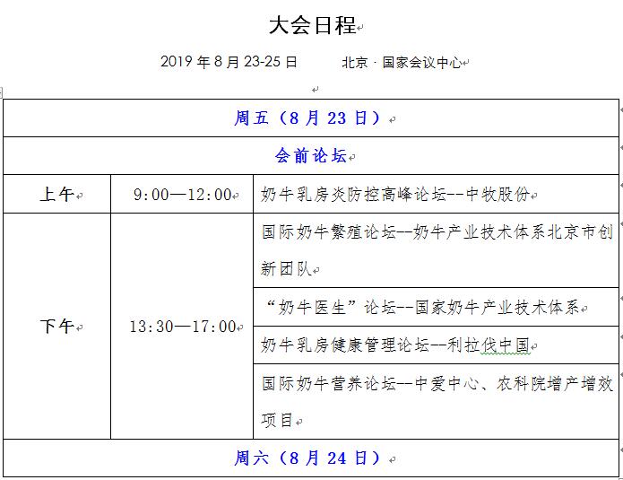 2019國際奶牛疾病大會暨展覽會 8月23日即將在北京·國際會議中心盛大開幕 大會日程首次曝光,后續(xù)還將有詳細日程持續(xù)更新 還不快快收藏起來!