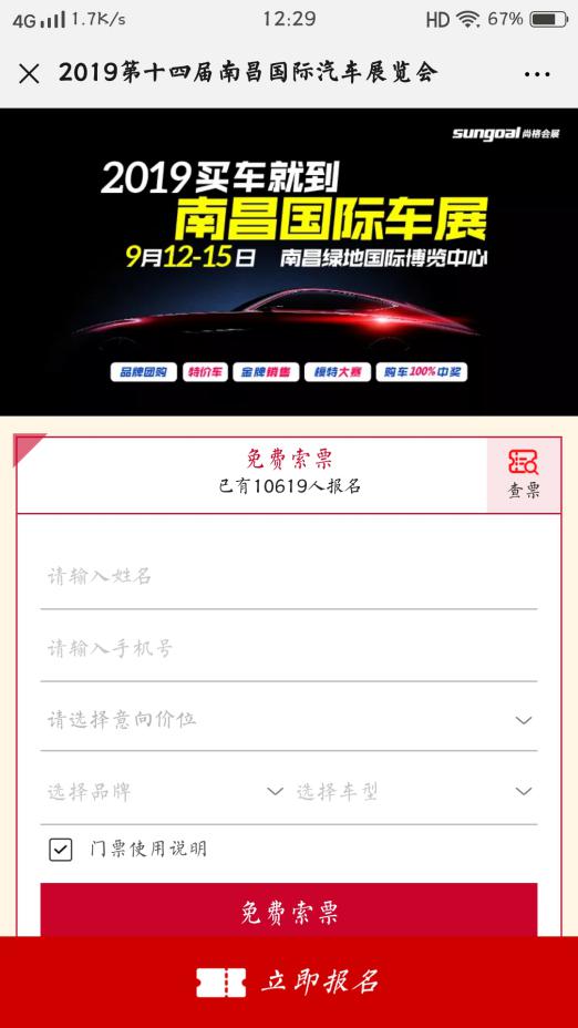 2)免費領取車展門票也可進入搶特價車通道,選擇意向的特價車型并點擊立即報名,即可獲得專屬特價車券,保存券號。