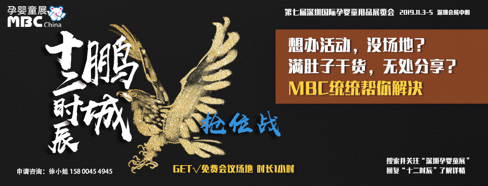 2019年11月3-5日連續(xù)舉辦七屆的MBC深圳孕嬰童展將在鵬城與大家見面!MBC作為專業(yè)的母嬰行業(yè)資源整合平臺(tái),也將貢獻(xiàn)自己的一份力量。將為MBC 2019已參展母嬰企業(yè)或是母嬰行業(yè)大咖級(jí)人物免費(fèi)提供活動(dòng)舉辦場地或是干貨分享環(huán)節(jié),時(shí)長1小時(shí)。我們來搭臺(tái),您們來唱戲!MBC深圳孕嬰童展與你一起助力中國母嬰產(chǎn)業(yè)品質(zhì)升級(jí)!