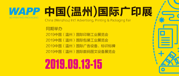 2019中國(guó)(溫州)國(guó)際廣印展將于9月13-15日在溫州國(guó)際會(huì)展中心隆重舉行。本屆展會(huì)由中國(guó)印刷及設(shè)備器材工業(yè)協(xié)會(huì)印刷機(jī)械分會(huì)、溫州市印刷行業(yè)協(xié)會(huì)、溫州市包裝聯(lián)合會(huì)、浙江省標(biāo)識(shí)行業(yè)協(xié)會(huì)、上海德納會(huì)展有限公司主辦,溫州德納展覽有限公司承辦。同期舉辦:2019中國(guó)(溫州)印刷工業(yè)展覽會(huì)、2019中國(guó)(溫州)包裝工業(yè)展覽會(huì)、2019中國(guó)(溫州)廣告設(shè)備、標(biāo)識(shí)標(biāo)牌展覽會(huì)、2019中國(guó)(溫州)數(shù)碼圖文設(shè)備展覽會(huì)等四大主題展會(huì)。