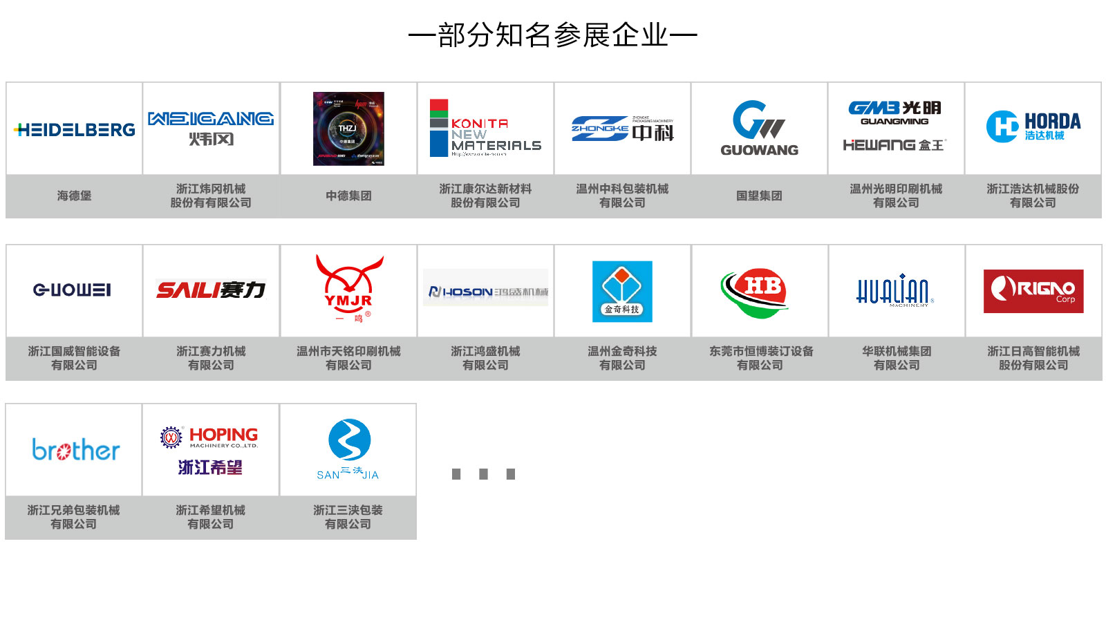 展會(huì)依托溫州——“中國(guó)印刷城”、“中國(guó)包裝機(jī)械城”、“中國(guó)印刷材料交易中心”、“中國(guó)印刷設(shè)備制造業(yè)第一區(qū)域品牌”、全球優(yōu)質(zhì)制造商聚集地產(chǎn)業(yè)高地優(yōu)勢(shì)和強(qiáng)勁的市場(chǎng)需求,吸引國(guó)內(nèi)外知名企業(yè)、品牌參展,展會(huì)展出產(chǎn)品涵蓋印刷、包裝、廣告標(biāo)識(shí)、數(shù)碼印花、圖文快印等品類。海德堡、煒岡、中德、康爾達(dá)、中科、國(guó)望、光明、浩達(dá)、國(guó)威、賽力、天銘等印刷行業(yè)龍頭企業(yè)悉數(shù)參與展會(huì);“智能包裝產(chǎn)業(yè)技術(shù)聯(lián)盟”成員華聯(lián)、日高、希望以及兄弟、三浹等包裝設(shè)備知名企業(yè)將攜新品展出;此外,博印、金奇、明睿等數(shù)碼印花、圖文快印、廣告標(biāo)識(shí)企業(yè)也將共襄盛會(huì)。
