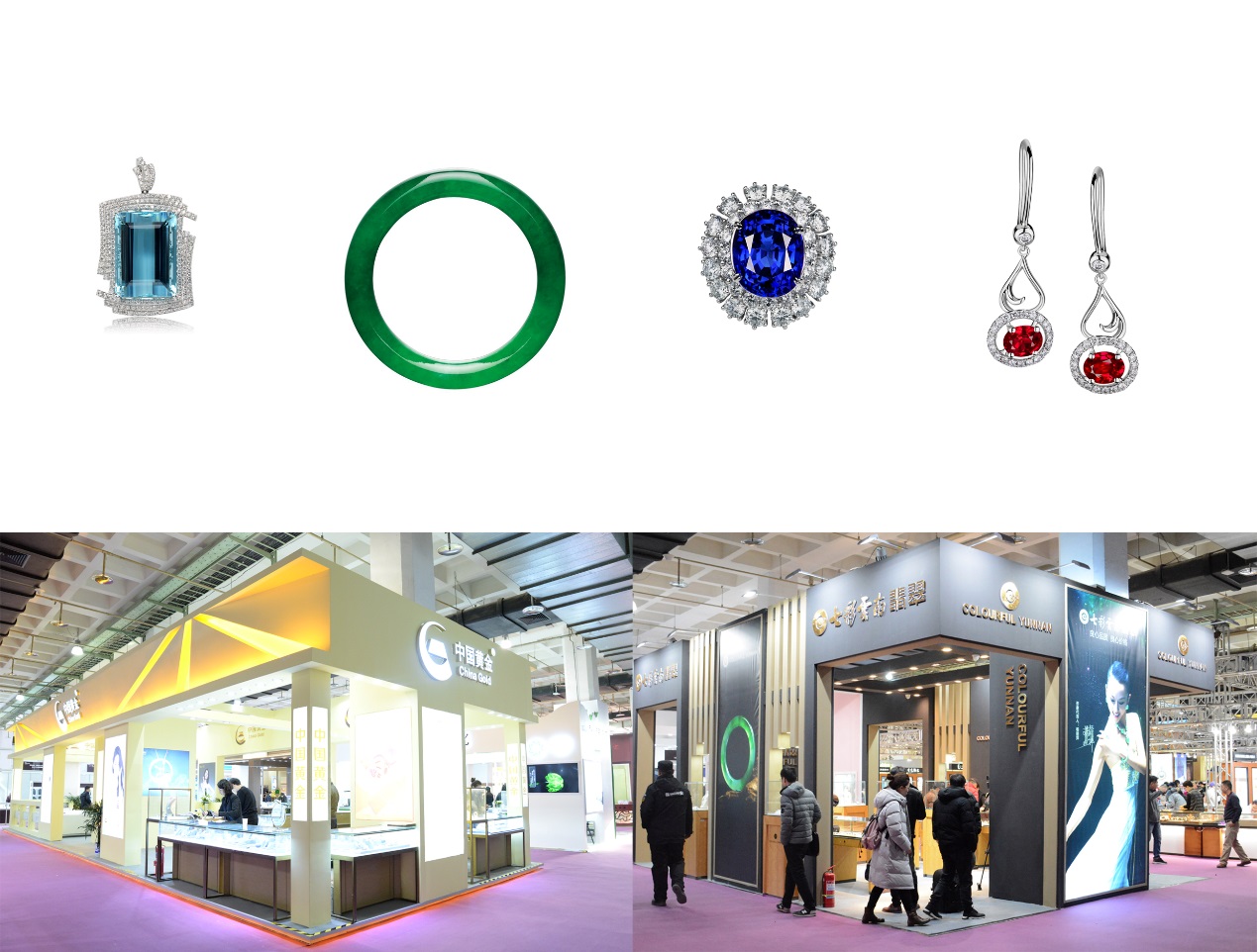 4、七彩云南(1A201-206):以全新面貌攜鎮(zhèn)店之寶絕代風(fēng)華系列、獨(dú)家設(shè)計(jì)專利作品本命福佑系列、萌犬護(hù)平安系列、天使之戀系列、楊麗萍孔雀系列及眾多精品珠寶華麗亮相。七彩云南在全球率先建立了科學(xué)規(guī)范的翡翠商業(yè)分級(jí)和定價(jià)體系,將“良心品質(zhì)、良心價(jià)格”的經(jīng)營(yíng)理念融入大眾和市場(chǎng),讓玉文化從此觸手可及。