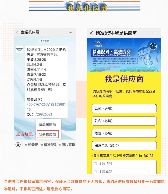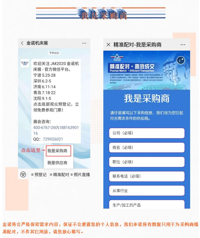 考慮到突發(fā)的疫情可能為您的觀展或采購造成不便,為了給您帶來最舒適的采購體驗,節(jié)省您的采購時間,找到更適合的產(chǎn)品,金諾機床展托旗下各專業(yè)會展項目,建立200萬大數(shù)據(jù)共享中心,開發(fā)“精準配對”供需專欄,通過互聯(lián)網(wǎng)大數(shù)據(jù)分析為展商精準匹配客戶,為專業(yè)觀眾推薦優(yōu)質(zhì)供應(yīng)商,引領(lǐng)機床工具行業(yè)在紅海市場中航行更遠。