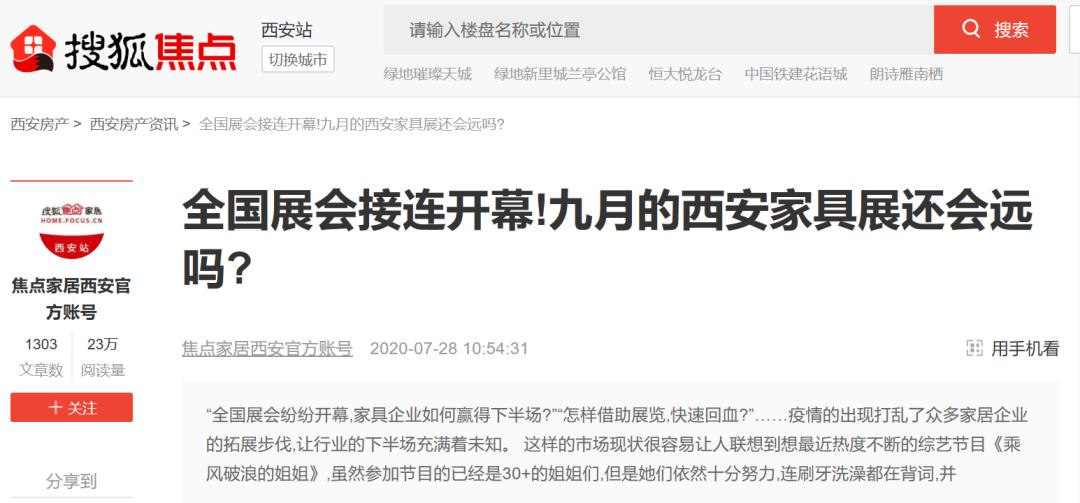 每年展會期間,《中國家具報(bào)道》、《深圳家具報(bào)》、《雅居》、《家居世界》、《華東家具》等60+專業(yè)媒體都會參與其中。另一方面,展會借由本地媒體《陜西日報(bào)》、交通916、公交廣告、LED車體廣告和電視臺等開展了廣泛密集式的宣傳報(bào)道,并還與百度、360搜索推廣、騰訊、頭條、行業(yè)庫短信/郵件通知等新媒體及數(shù)據(jù)渠道建立了緊密合作。