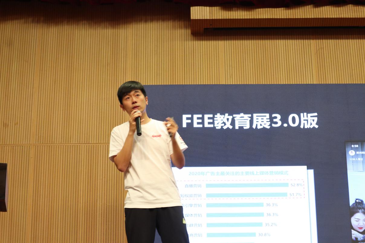 圖為:鄭州媽媽邦總經(jīng)理?xiàng)钌?br /> 鄭州媽媽邦總經(jīng)理(FEE教育展創(chuàng)始人)楊上先生分享了鄭州媽媽邦一貫秉持“高度信任、全情投入、攜手共贏”的企業(yè)服務(wù)態(tài)度,詳細(xì)介紹了展會(huì)線上線下的獨(dú)特模式,采用的最新直播及科技賦能的手段,為參展客戶打造全年不間斷的推廣頻次和維度。其超前的傳播思維,多元化的推廣模式,互動(dòng)性的交流氛圍,帶給與會(huì)嘉賓和代表們?nèi)碌母惺?,隨即在現(xiàn)場及直播端引起了廣泛的關(guān)注和共鳴。
