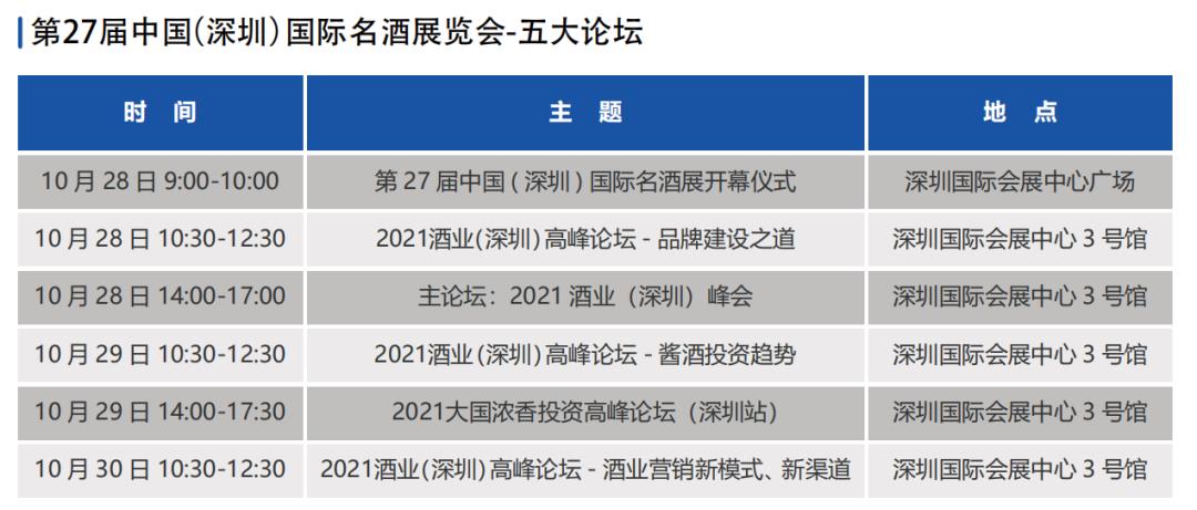 10月28日-30日,由科通國際展覽(廣州)有限公司主辦的“第27屆中國(深圳)國際名酒展覽會(huì)”(以下簡稱“名酒展”)將在深圳國際會(huì)展中心舉辦,3大展館展示面積高達(dá)60000㎡。