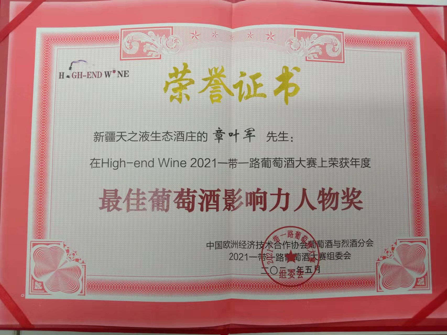 l High-end Wine 2022——年度最佳葡萄酒影響力人物獎(僅限5名) 如:天之液·章葉軍
