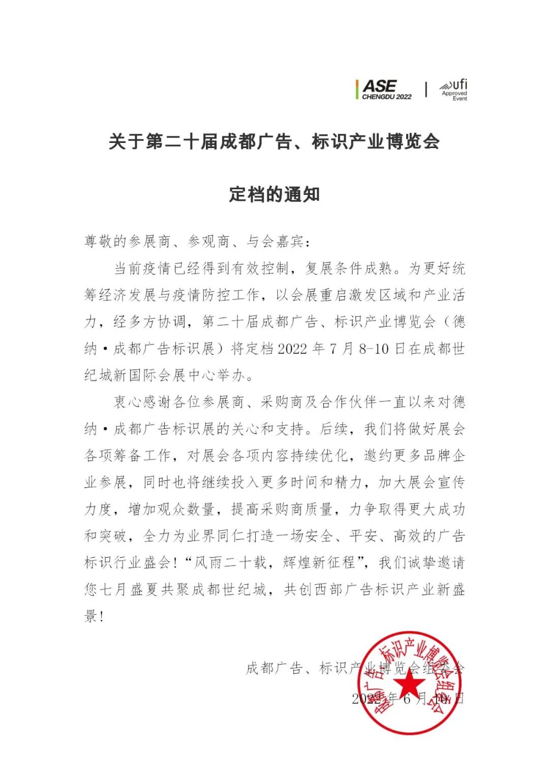 各位支持和關(guān)注德納·成都廣告標識展的朋友們,久等啦!當前疫情已經(jīng)得到有效控制,復(fù)展條件成熟為更好統(tǒng)籌經(jīng)濟發(fā)展與疫情防控工作,以會展重啟激發(fā)區(qū)域和產(chǎn)業(yè)活力,國內(nèi)多個城市恢復(fù)舉辦展會。經(jīng)多方協(xié)調(diào),第20屆成都廣告、標識產(chǎn)業(yè)博覽會定檔啦!