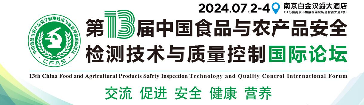 由南京市產(chǎn)品質(zhì)量監(jiān)督檢驗院(南京市質(zhì)量發(fā)展與先進技術(shù)應(yīng)用研究院)、中國儀器儀表學(xué)會分析儀器分會、中國儀器儀表行業(yè)協(xié)會分析儀器分會聯(lián)合北京中儀雄鷹國際會展有限公司共同主辦的“第十三屆中國食品與農(nóng)產(chǎn)品安全檢測技術(shù)與質(zhì)量控制國際論壇”(簡稱 CFAS 2024)”將于2024年7月2-4日在南京白金漢爵大酒店舉辦。大會將繼承發(fā)揚前十二屆的專業(yè)特色和學(xué)術(shù)風(fēng)格,圍繞“交流、促進、安全、健康、營養(yǎng)”的主題來開展學(xué)術(shù)交流和展示活動。