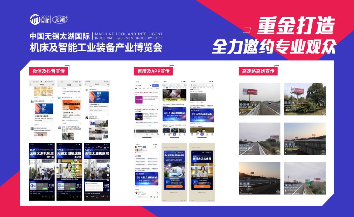 線下宣傳同樣不遺余力,在無(wú)錫周邊高速公路及市區(qū)主干道設(shè)置高速高炮廣告、宣傳橫幅、噴繪廣告、空飄氣球廣告、出租車(chē)公交車(chē)身廣告等戶(hù)外廣告,全面覆蓋重點(diǎn)場(chǎng)所。同時(shí),在《金屬加工世界》《機(jī)床與裝備》《CNC刀具世界》《機(jī)床工具制造業(yè)》等 50 多家專(zhuān)業(yè)媒體雜志,以及《中國(guó)機(jī)床商務(wù)網(wǎng)》《中國(guó)金屬加工在線網(wǎng)》《機(jī)電在線》等 500 多家專(zhuān)業(yè)網(wǎng)站媒體、微博、獨(dú)立強(qiáng)大的觀眾微信平臺(tái)等進(jìn)行定時(shí)推廣,并借助無(wú)錫電視臺(tái)、無(wú)錫廣播電臺(tái)等大眾媒體進(jìn)行密集宣傳。通過(guò)線上線下緊密結(jié)合的宣傳方式,形成全方位、高覆蓋、高精度的宣傳矩陣,確保展會(huì)信息精準(zhǔn)觸達(dá)目標(biāo)群體,吸引更多專(zhuān)業(yè)觀眾和潛在客戶(hù)。
